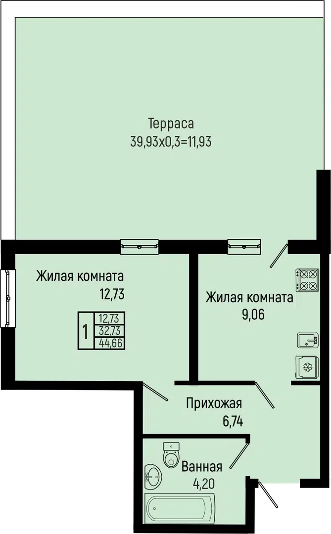 1-комнатная, 26.71 м²