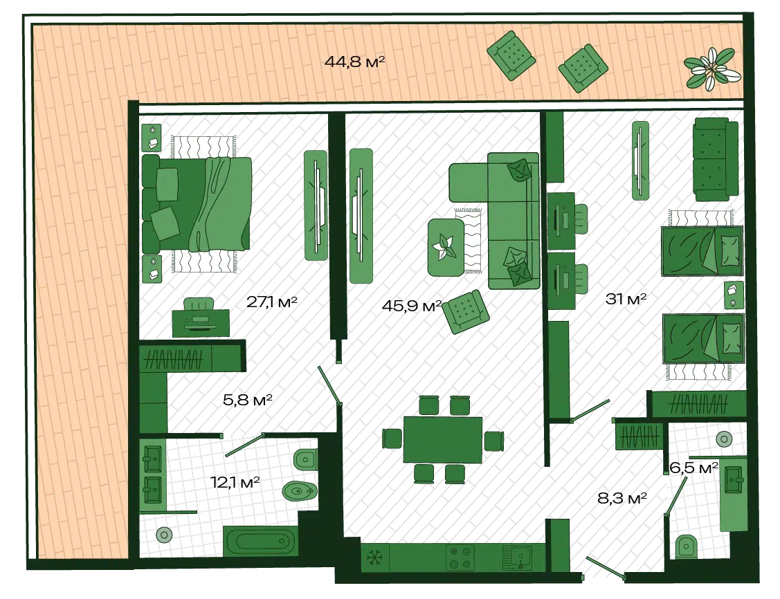 3-комнатная квартира, 143.50 м², 3 эт.