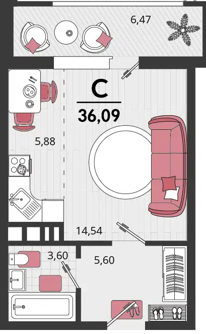 1-комн. квартира, 36.09 м²