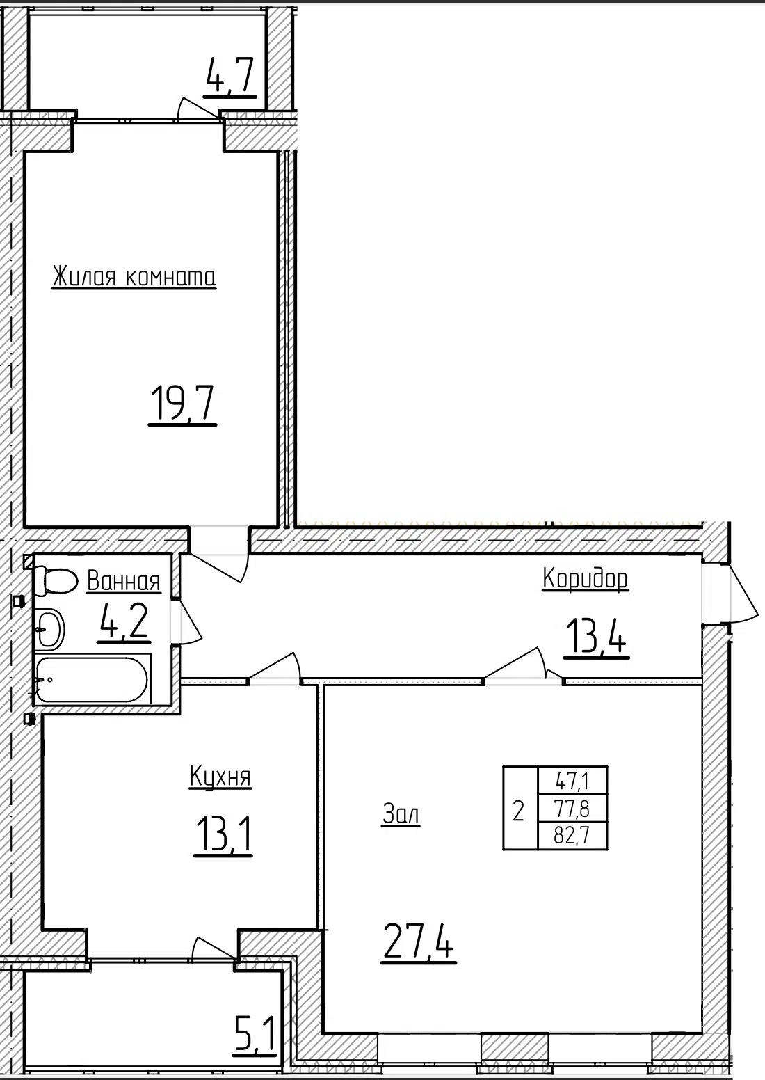 2-комнатная, 76.70 м²