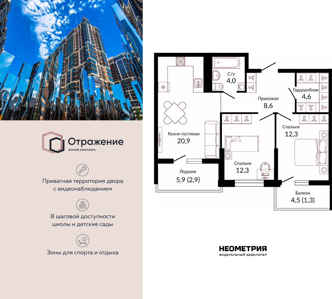 2-комнатная, 62.80 м²