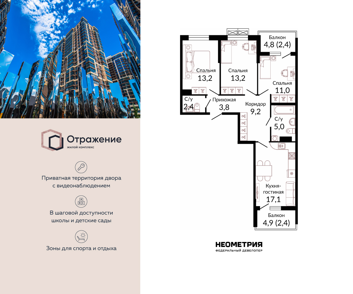 3-комнатная, 82.10 м²