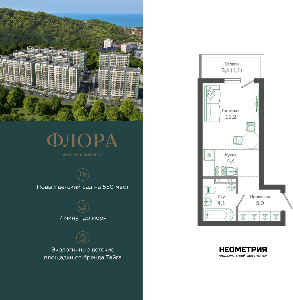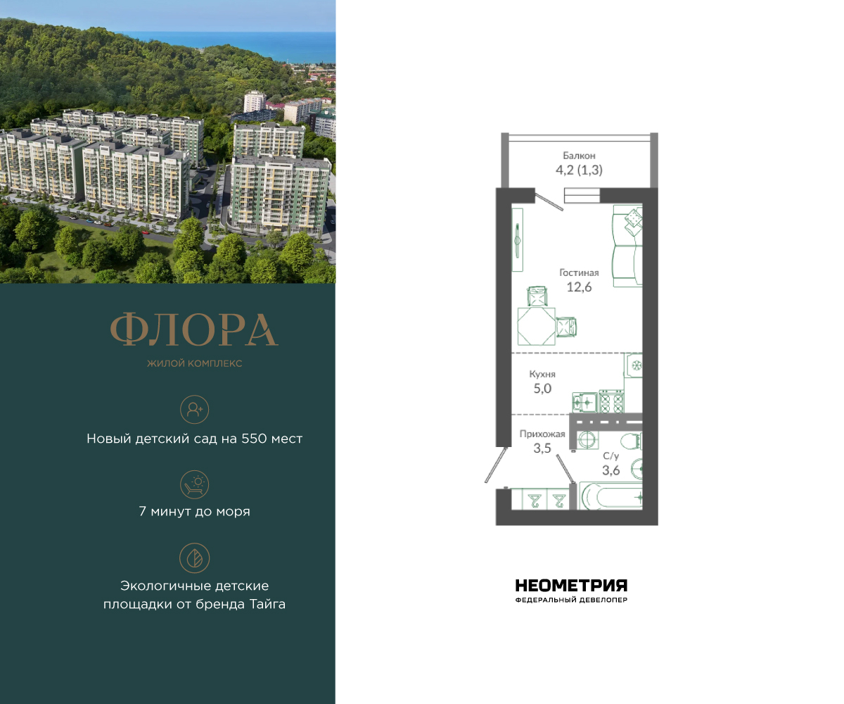 Студия, 25.90 м²