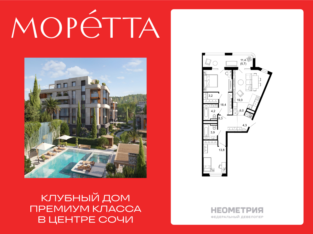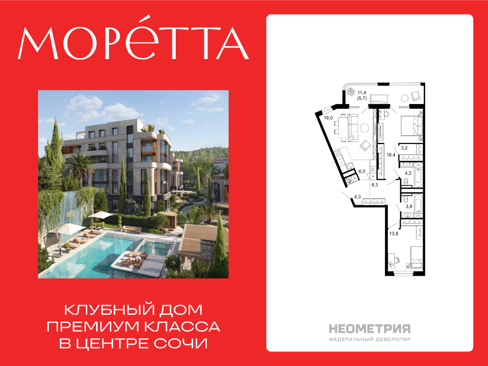 2-комнатная квартира, 82.40 м², 4 из 6 эт.